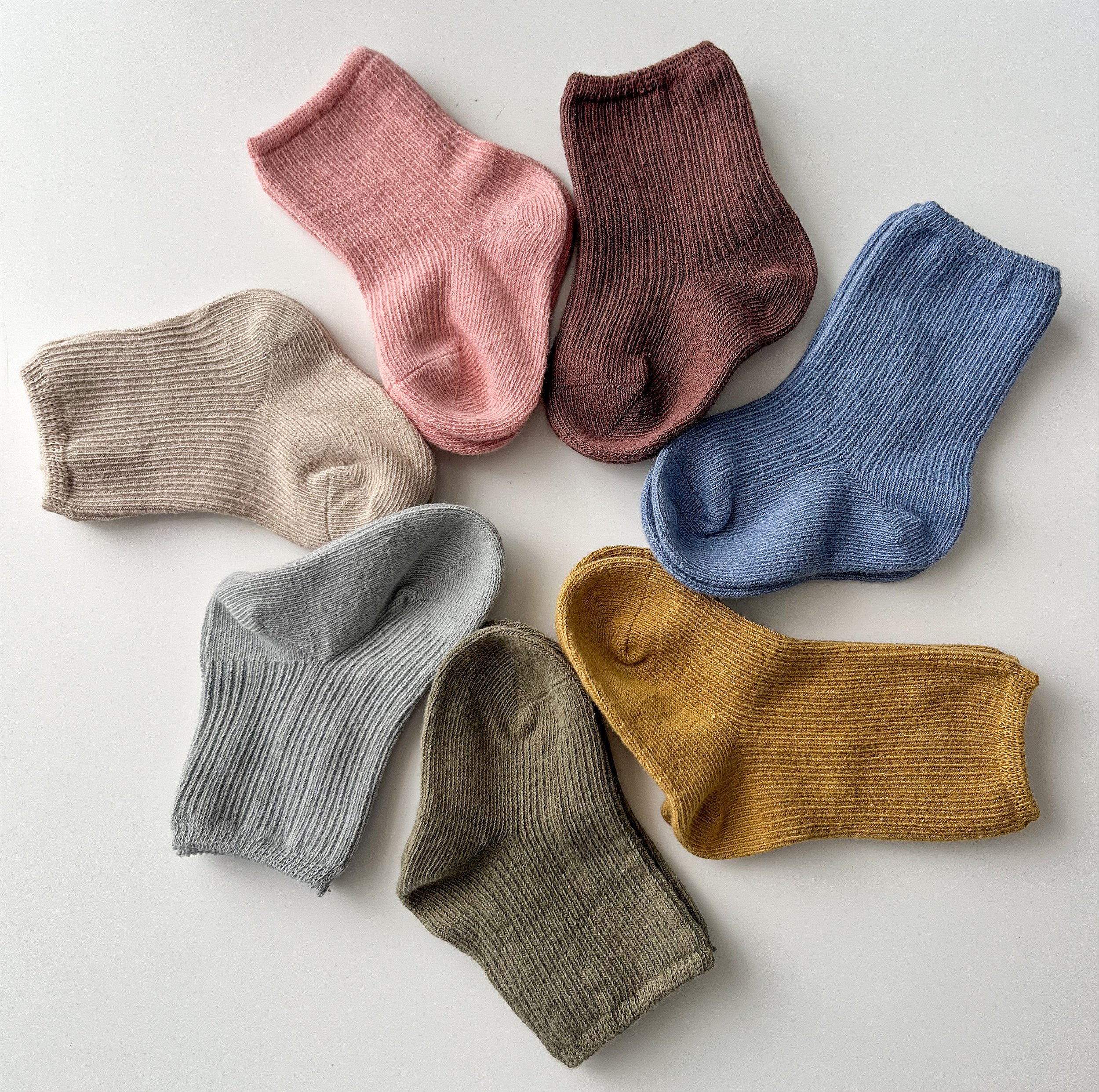 MEIAS DE BEBÊ UNISSEX (Mostarda, Verde Oliva e Cinza Claro).